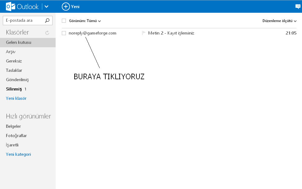 Daha sonra metin2 sitesinden aktivasyon postası gelecek. Aşağıda resimde olduğu gibi gelen e-posta’yı açıyoruz.