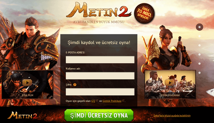 Metin2 TR sitesine kaydolmak için ilk önce buraya tıklayın